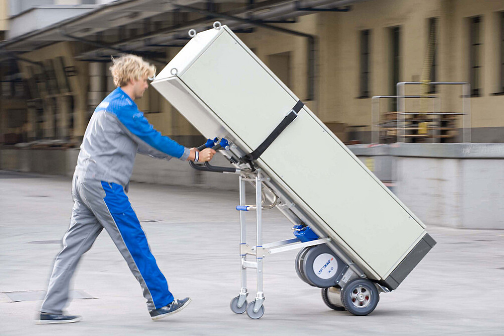 War die Beförderung von hohen Gegenständen bisher meist ein schwieriger Balanceakt, so bewältigt der LIFTKAR HD Universal mit seinem starken Elektromotor diese Aufgabe souverän. Dank der schlanken Bauweise und der innovativen Steigtechnologie lassen sich hohe und schwere Gegenstände sicher und ohne Kraftanstrengung auch durch enge Treppenhäuser und über Wendeltreppen transportieren.