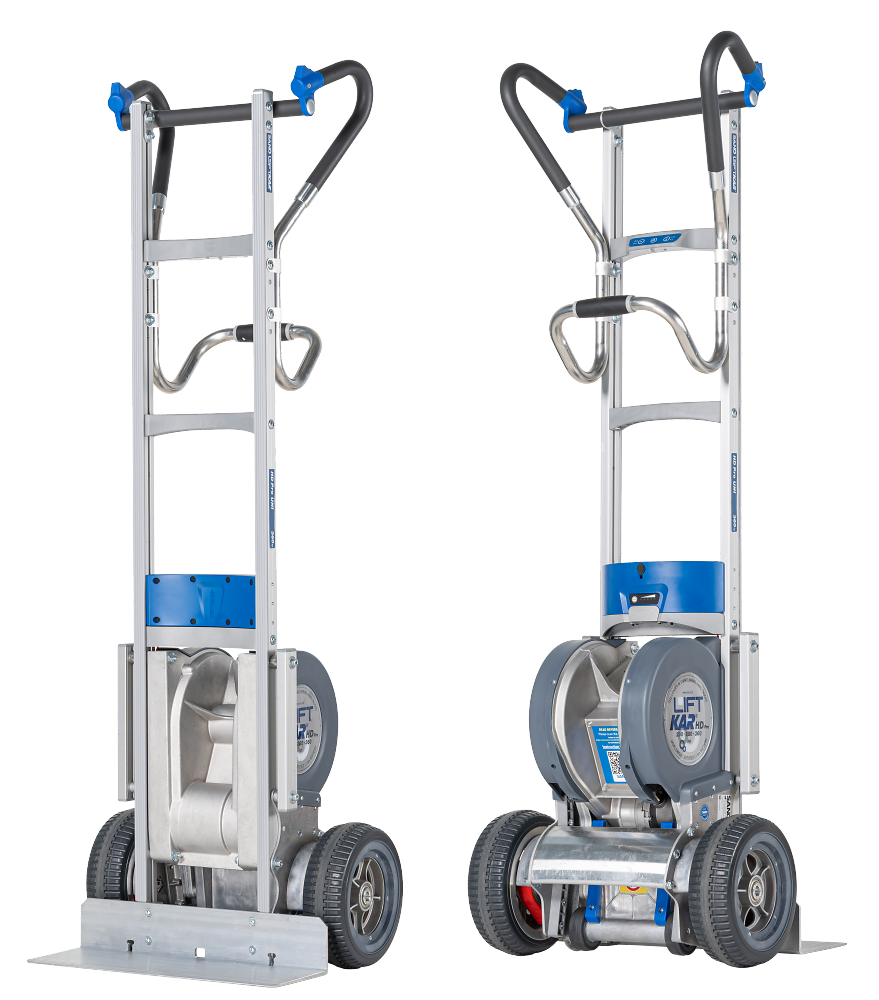 War die Beförderung von hohen Gegenständen bisher meist ein schwieriger Balanceakt, so bewältigt der LIFTKAR HD Universal mit seinem starken Elektromotor diese Aufgabe souverän. Dank der schlanken Bauweise und der innovativen Steigtechnologie lassen sich hohe und schwere Gegenstände sicher und ohne Kraftanstrengung auch durch enge Treppenhäuser und über Wendeltreppen transportieren.