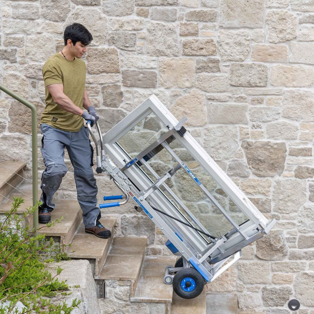 Der LIFTKAR SAL ist einfach wie eine Sackkarre zu bedienen. Mit dem durch einen Akku angetriebenen Steigmechanismus ist man auch auf den Treppen flott und sicher unterwegs. Treppauf zieht sich der LIFTKAR SAL effizient und exakt selbst auf die höher liegende Stufe. Treppab wirkt der Motor wie eine Wirbelstrombremse. Die Last gleitet ohne Tastendruck stoßfrei und sicher hinunter. Der Rücken wird geschont und die Unfallgefahr minimiert.