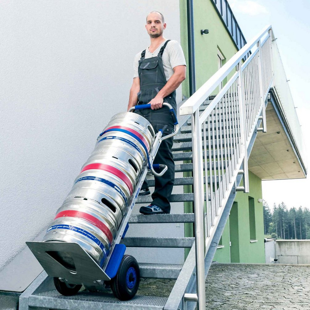 Der LIFTKAR SAL ist einfach wie eine Sackkarre zu bedienen. Mit dem durch einen Akku angetriebenen Steigmechanismus ist man auch auf den Treppen flott und sicher unterwegs. Treppauf zieht sich der LIFTKAR SAL effizient und exakt selbst auf die höher liegende Stufe. Treppab wirkt der Motor wie eine Wirbelstrombremse. Die Last gleitet ohne Tastendruck stoßfrei und sicher hinunter. Der Rücken wird geschont und die Unfallgefahr minimiert.