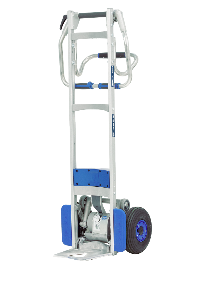 Der LIFTKAR SAL ist einfach wie eine Sackkarre zu bedienen. Mit dem durch einen Lithium Akku angetriebenen Steigmechanismus ist man auch auf den Treppen flott und sicher unterwegs. Treppauf zieht sich der LIFTKAR SAL effizient und exakt selbst auf die höher liegende Stufe. Treppab wirkt der Motor wie eine Wirbelstrombremse. Die Last gleitet ohne Tastendruck stoßfrei und sicher hinunter. Der Rücken wird geschont und die Unfallgefahr minimiert.