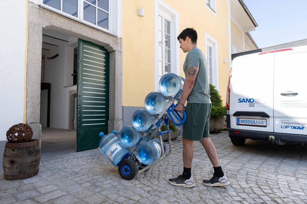Wir präsentieren den ModulKar AQUA BOXER, die neueste Ergänzung unserer innovativen Produktlinie, speziell entwickelt um Wasserlieferungen zu optimieren. Diese robuste Handkarre kann bis zu 7 Wasserflaschen (und bis zu 300 kg) tragen und eignet sich somit hervorragend für den anspruchsvollen Wasserlieferungsservice. Aufbauend auf den Stärken unseres bekannten ModulKar BOXER, übernimmt der ModulKar AQUA BOXER Merkmale wie ergonomisches Design und Anpassungsfähigkeit an verschiedene Geländearten. Der ModulKar AQUA BOXER steht nicht nur für Funktionalität; er steht für Zuverlässigkeit und Effizienz. Er ist für den täglichen Gebrauch konzipiert und gewährleistet, dass Wasserlieferungsprofis ihre Arbeit ohne Unterbrechungen durchführen können. Wie der ModulKar BOXER ist er darauf ausgelegt, ein signifikantes Gewicht zu tragen – in diesem Fall bis zu 7 große Wasserflaschen – und dabei den Komfort und die Sicherheit des Bedieners zu gewährleisten.