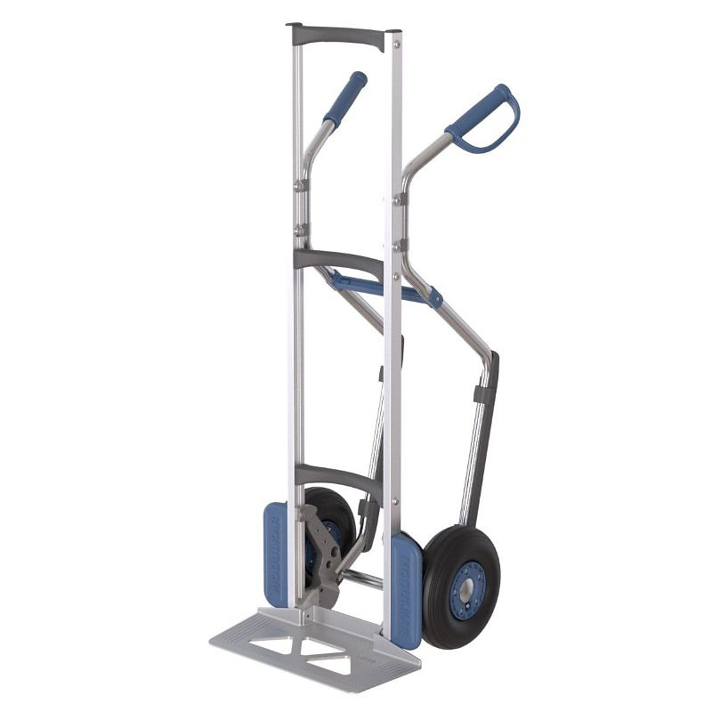 Eine weitere vielseitige Sackkarrenversion ist der ModulKar BOXER Pistol. Ähnlich wie der "BOXER", ist auch diese Version perfekt für verschiedene Transportsituationen gemacht. Ausgestattet mit Pistolengriffen und Treppengleitkufen und einer Tragkraft von bis zu 300 kg, ist der ModulKar BOXER Pistol der ideale Begleiter für Branchen wie Einzelhandel, Lagerbetriebe, Eventlogistiker und vielen weiteren.