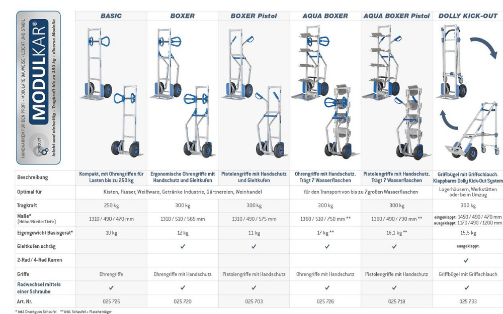 - Handgriff mit Griffhülse- Klappbares Dolly Kick-Out System